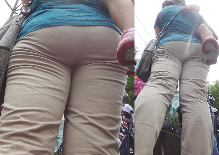【美巨尻】パンツをパンパンに張らせていたママさんをローアングル撮影