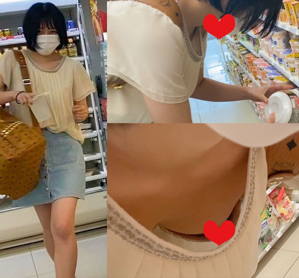 胸チラに気づかずに買い物する女の子(3人)#2