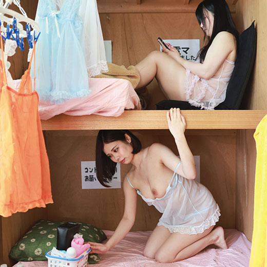 冒頭~狭い空間。透け透けのネグリジェを着た嬢。すぐ頭上に待機中の別の女。