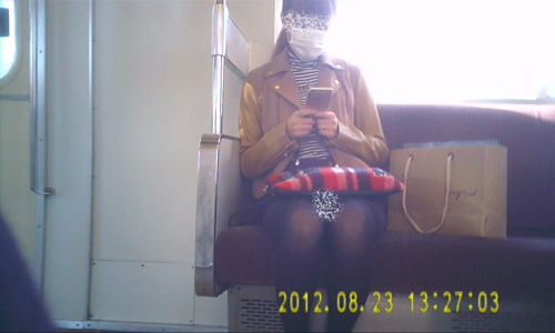 ふと電車に乗ると、スマホに夢中の超ミニスカ女子大生を発見!