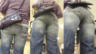 盗撮 美人OLさんのパンティーが喰い込んだ美巨尻ジーンズをローアングルで撮影!