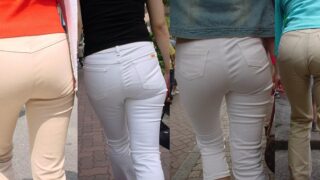 細身で綺麗な通勤途中のお姉さんの股間にはショーパンが張り付いて…