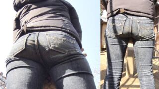 ジーンズ美尻にパンティーラインをクッキリ浮かび上がる長身の美人ヤンママ…
