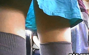盗撮 電車内のミニスカニーハイソックス女子は純白パンティーと思いきや・・・